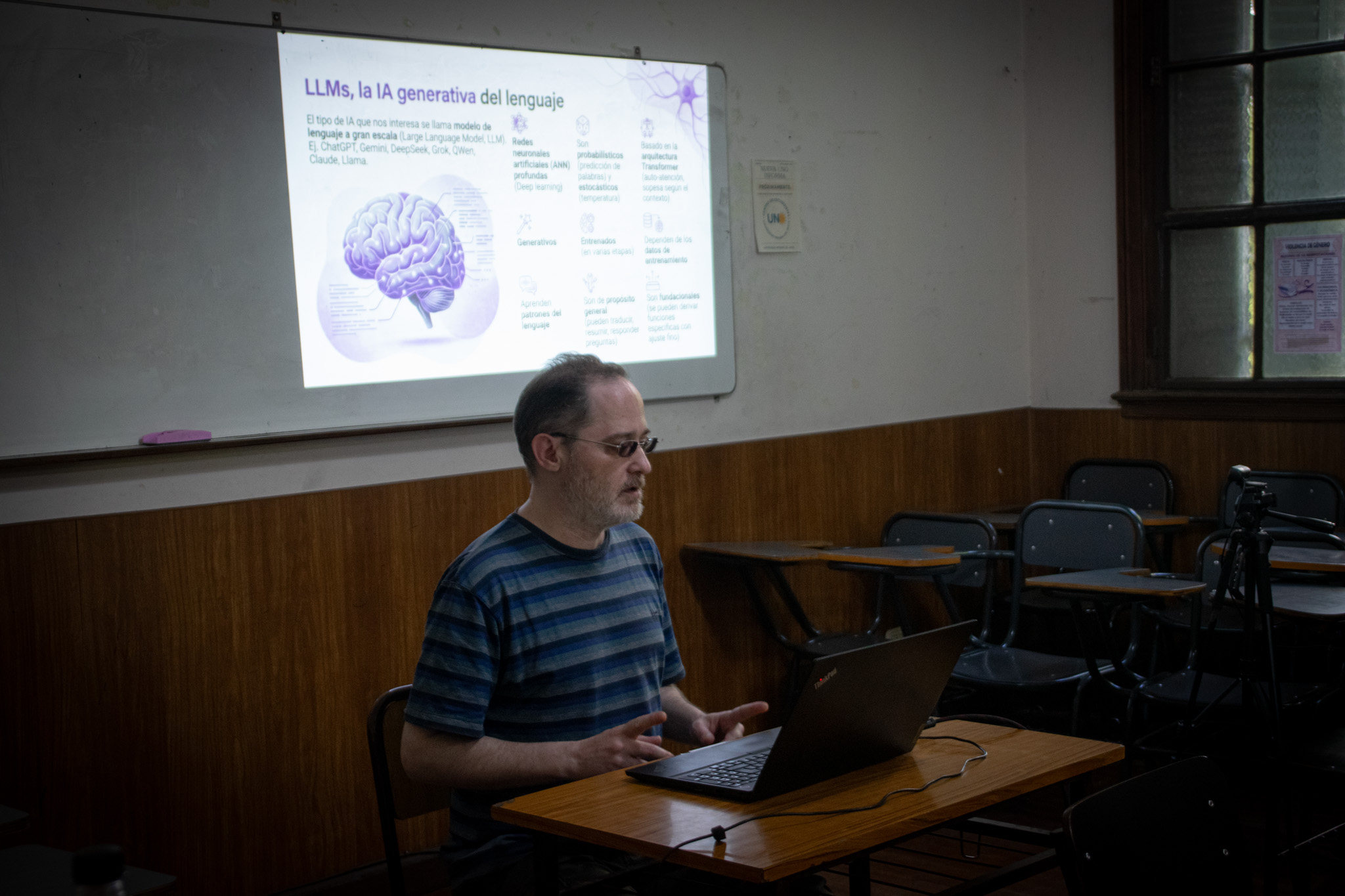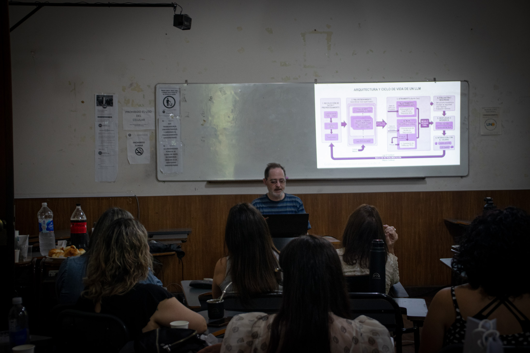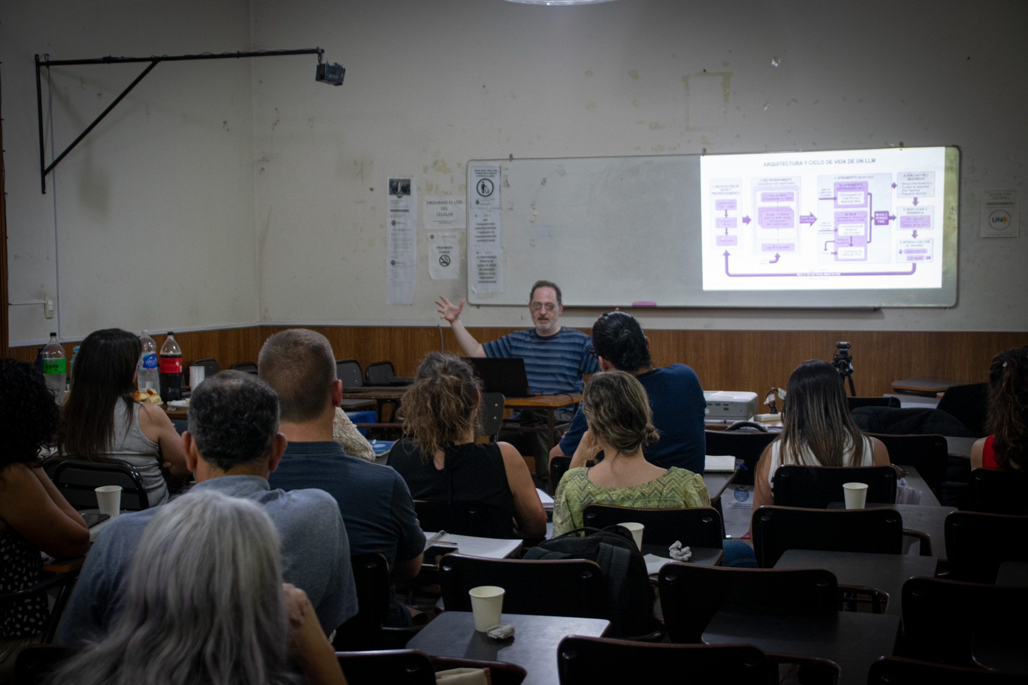 El miércoles 3 de diciembre se llevó a cabo el taller «Utilización de la inteligencia artificial en la investigación científica» dentro del Instituto de Cultura Popular y Pensamiento Nacional dirigido por la Lic. Gabriela Tozzi. Esta actividad fue dictada por el Dr. Lucas Samaruga como espacio de capacitación y discusión sobre el funcionamiento y uso de los modelos de lenguaje a gran escala (LLM) en investigación. En ella se abordaron los conceptos y principios funcionales de los modelos y técnicas de uso como la generación aumentada por recuperación (RAG) e ingeniería de prompt. El taller contó con la participación de directores/as e integrantes de proyectos de investigación y extensión del Instituto.