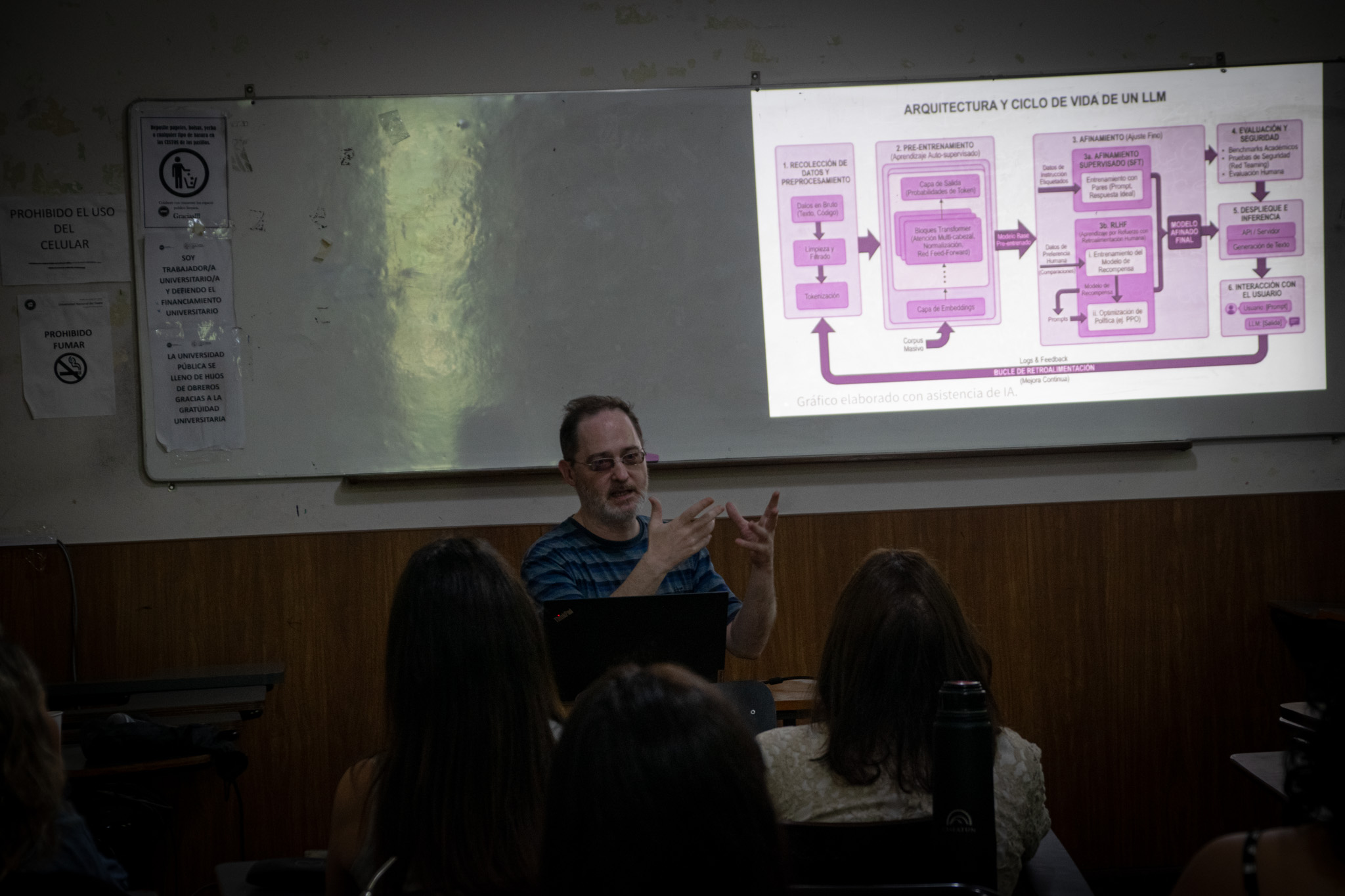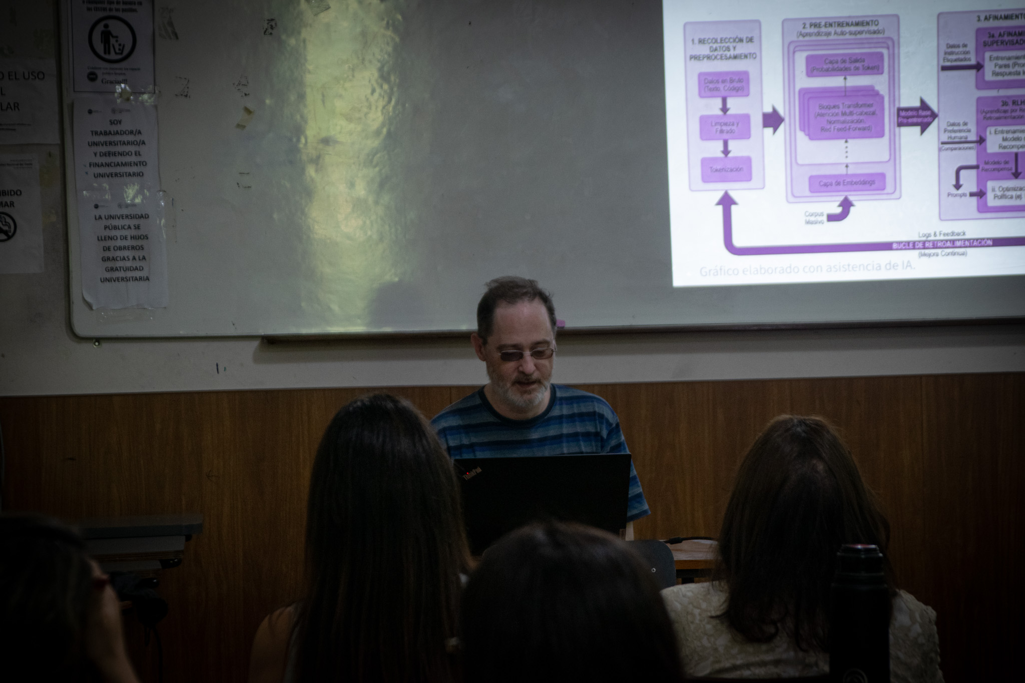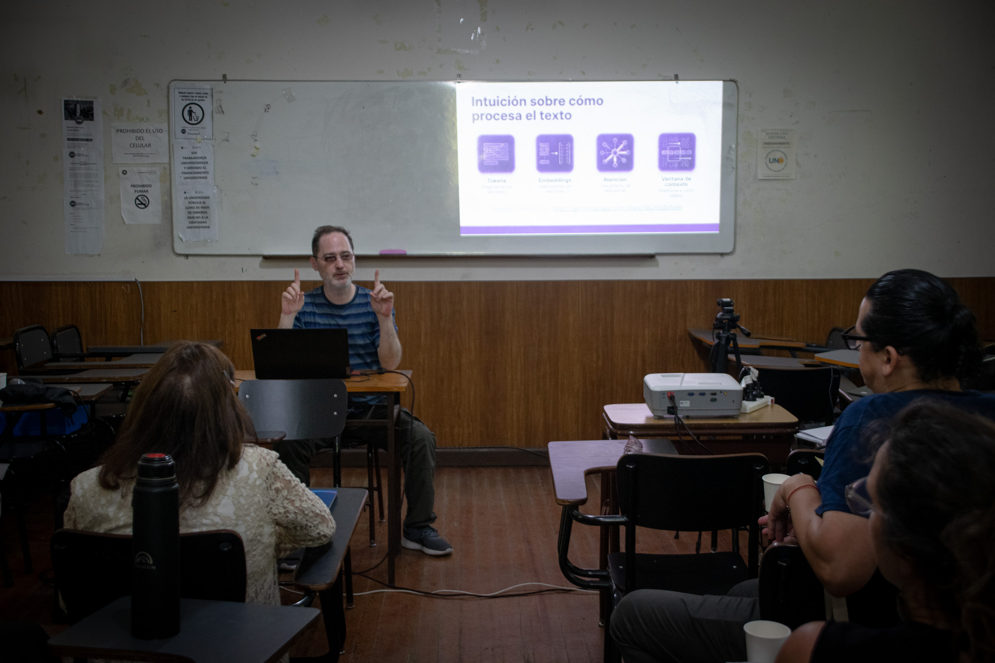 El miércoles 3 de diciembre se llevó a cabo el taller «Utilización de la inteligencia artificial en la investigación científica» dentro del Instituto de Cultura Popular y Pensamiento Nacional dirigido por la Lic. Gabriela Tozzi. Esta actividad fue dictada por el Dr. Lucas Samaruga como espacio de capacitación y discusión sobre el funcionamiento y uso de los modelos de lenguaje a gran escala (LLM) en investigación. En ella se abordaron los conceptos y principios funcionales de los modelos y técnicas de uso como la generación aumentada por recuperación (RAG) e ingeniería de prompt. El taller contó con la participación de directores/as e integrantes de proyectos de investigación y extensión del Instituto.