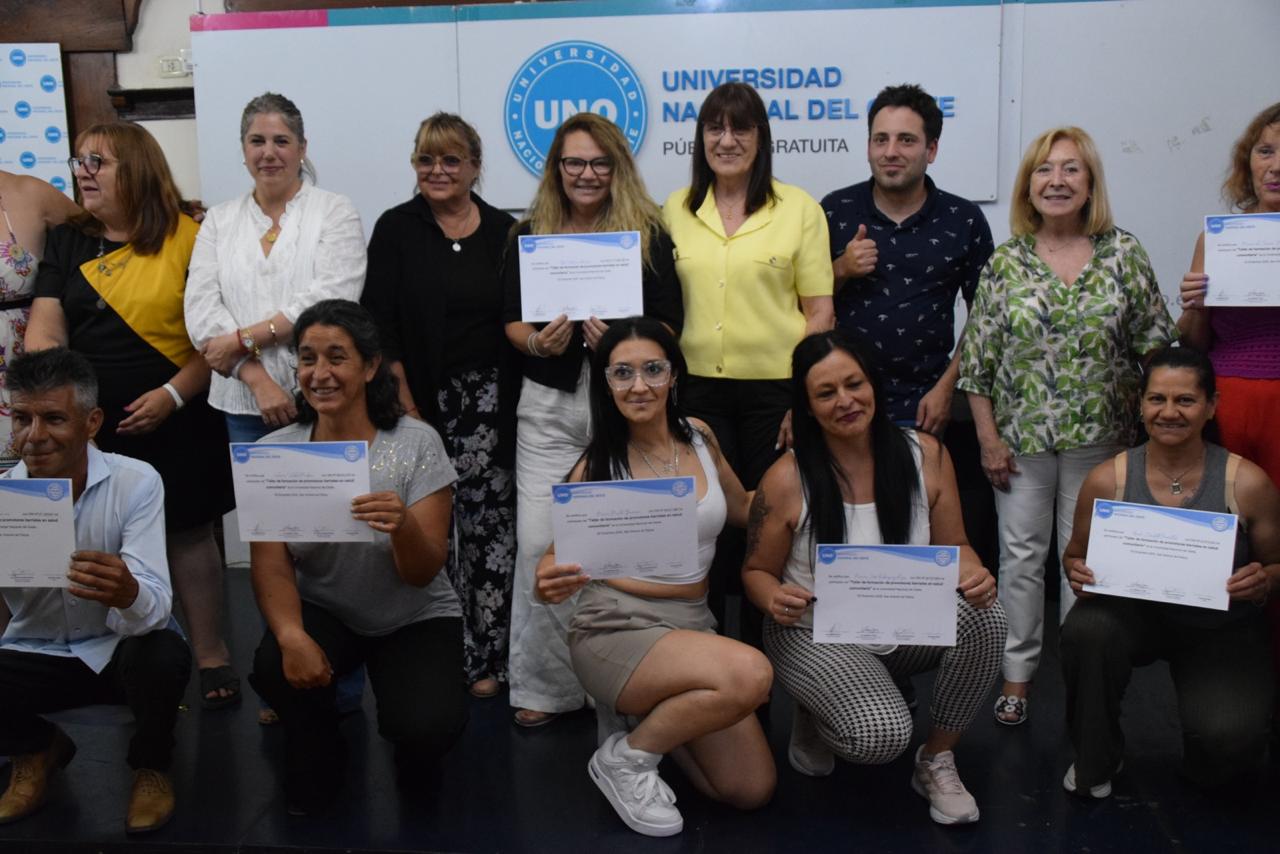 El pasado viernes 5 de diciembre en la Sede del Rectorado de la UNO se realizó la entrega de diplomas a los participantes de la capacitación de PROMOTORES BARRIALES EN SALUD COMUNITARIA. La misma se desarrolló en la Sociedad de Fomento del barrio Los Vascos durante el primer cuatrimestre, y en el Centro Cultural El Carpincho en el segundo cuatrimestre.